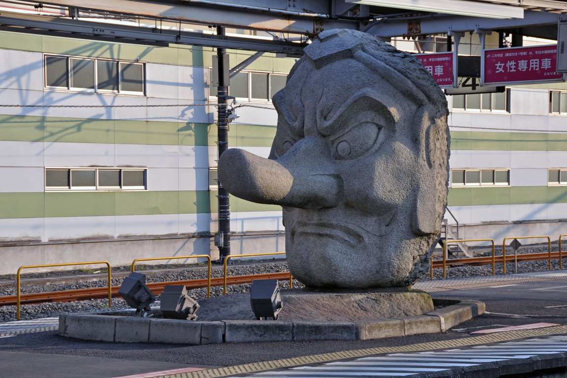 国鉄時代から、観光地の駅のプラットホームには地元を象徴する有名なものが飾られていました。 この天狗の石像は、どの駅に置かれているでしょうか?