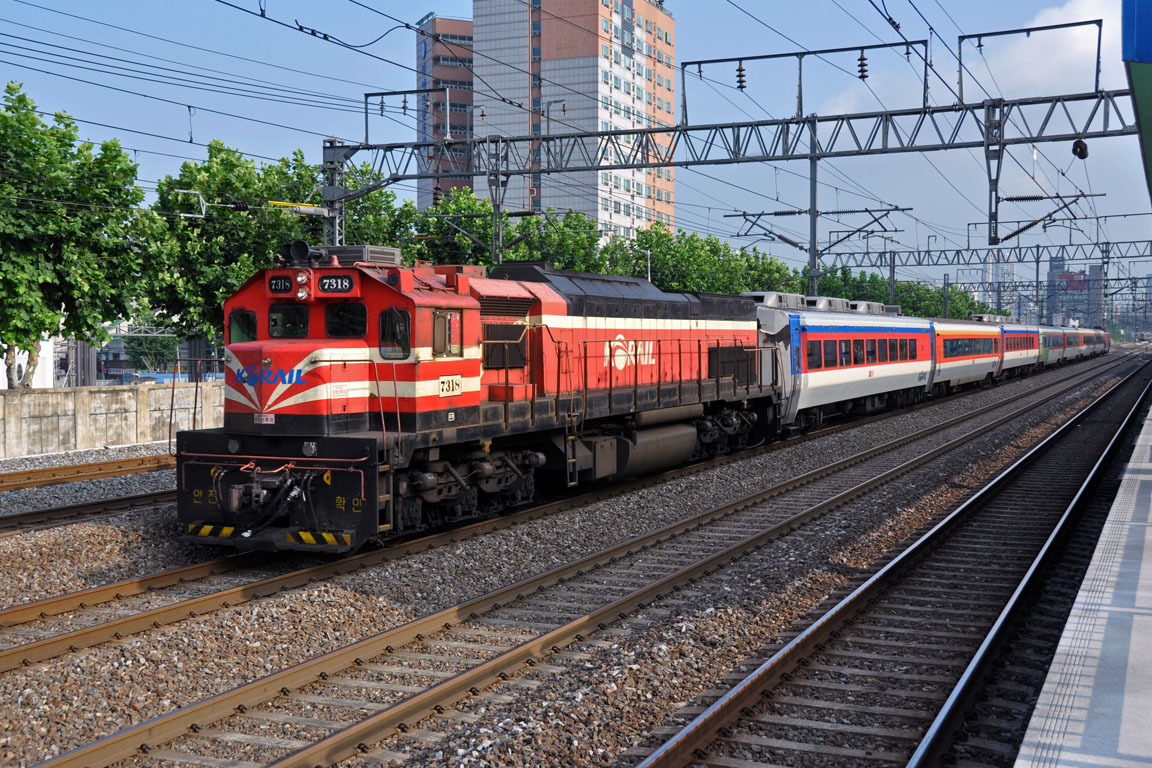 | 鷲梁津で撮影した7318が、京釜線のムグンファ号を牽引してきました。