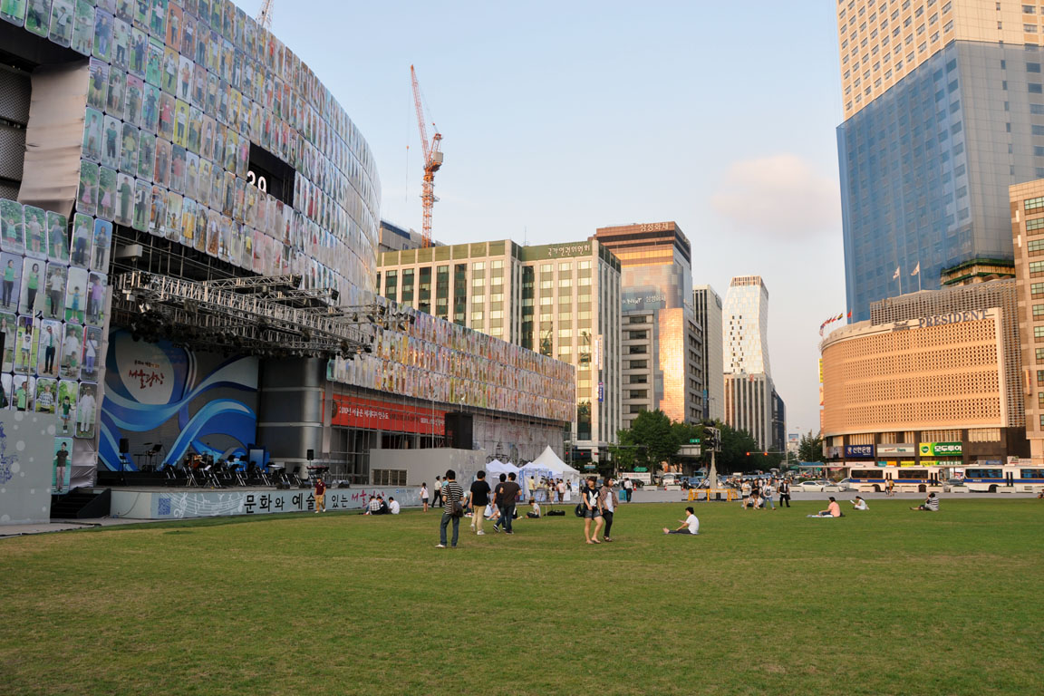 サッカーのワールドカップなど、ソウルからテレビの実況中継があると、この広場が良く映っています。 2010/8/20 City Hall 市庁 201 ソウル地下鉄 2号線 |