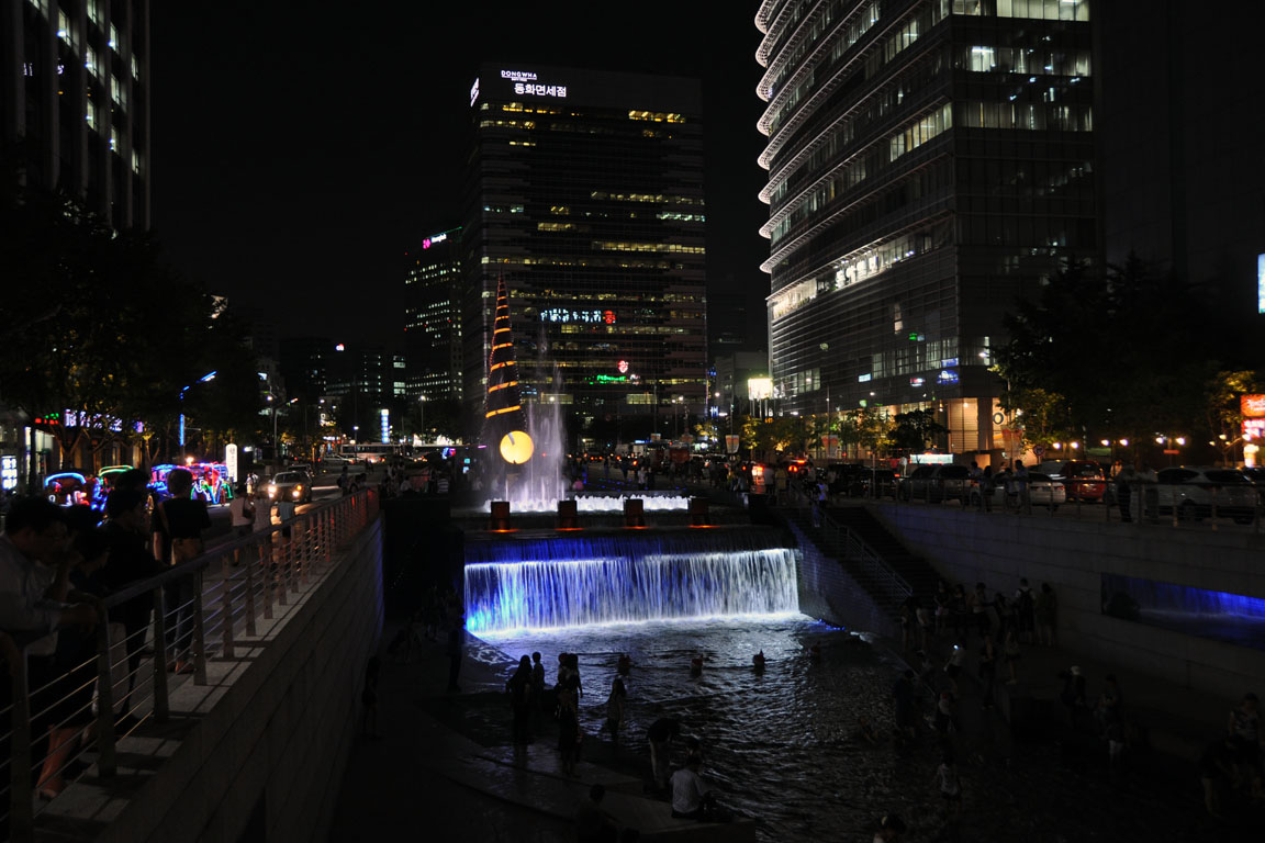 ソウル市の中心部を東西に流れる清渓川(チョンゲチョン)です。