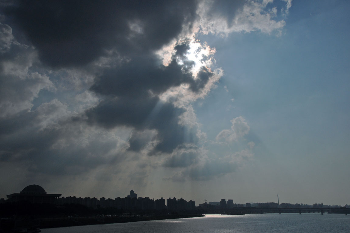 ホテルから金浦空港に向かう途中に通った、漢江を渡る西江大橋からの眺めです。