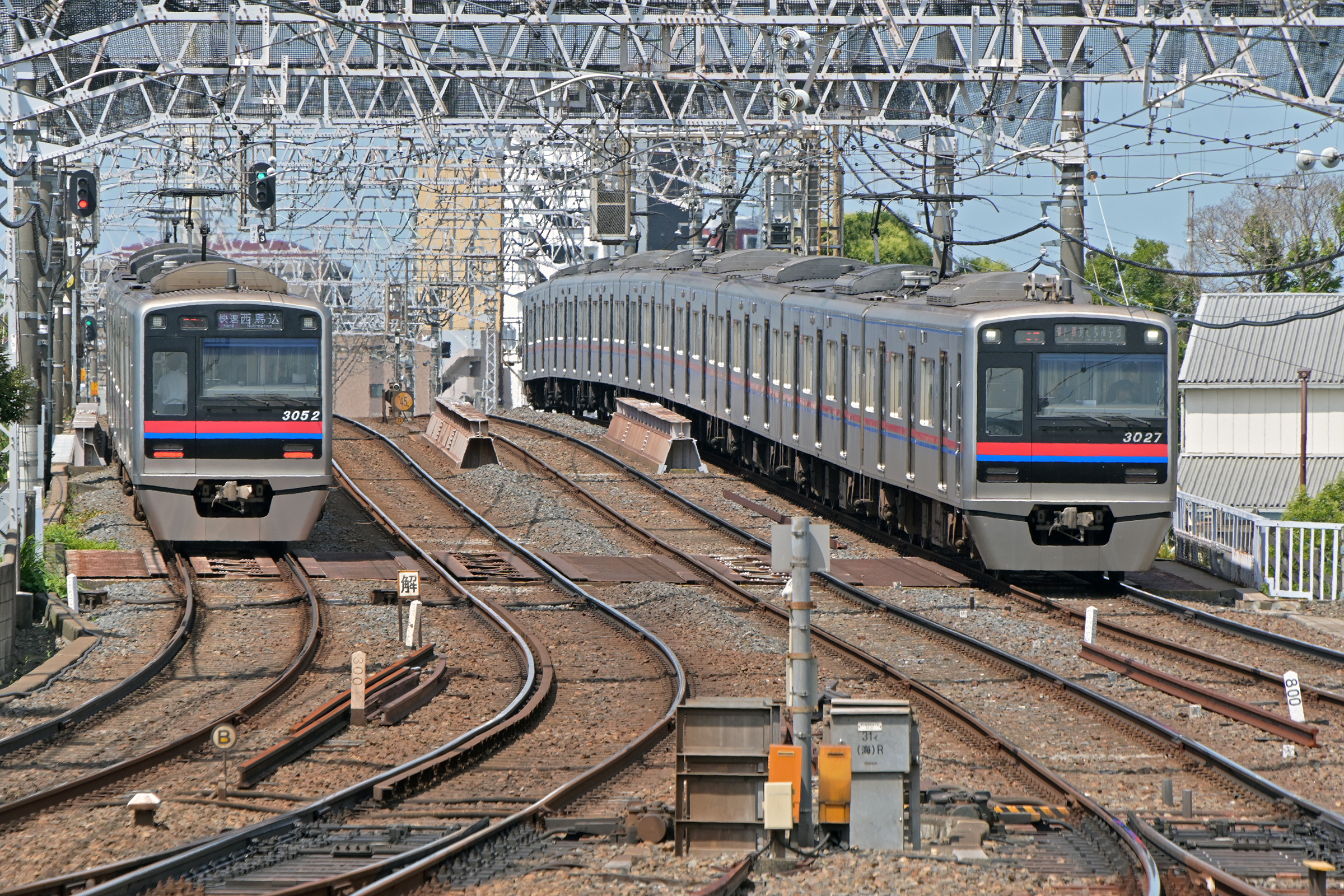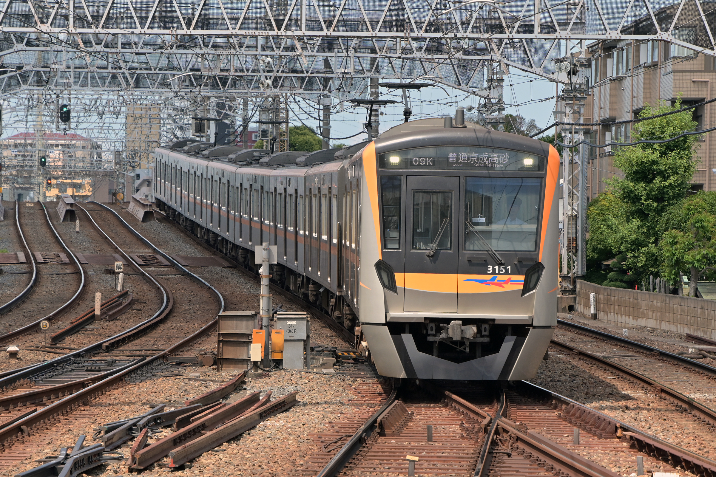 成田スカイアクセス線用の車両ですが、ここで折り返しました。 2025/7/21 本線 京成高砂 model 3100, 3151 京成高砂行き |
