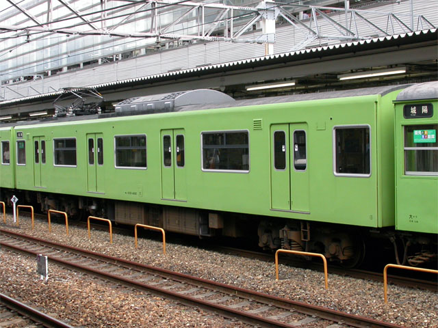 雨樋を撤去、客室窓を全面更改、車内は完全にリニューアルされていました。 103系の無骨さは完全に失われ、近代的な姿に変身しています。 2003/8/9 JR奈良線 京都 103系0番台 |