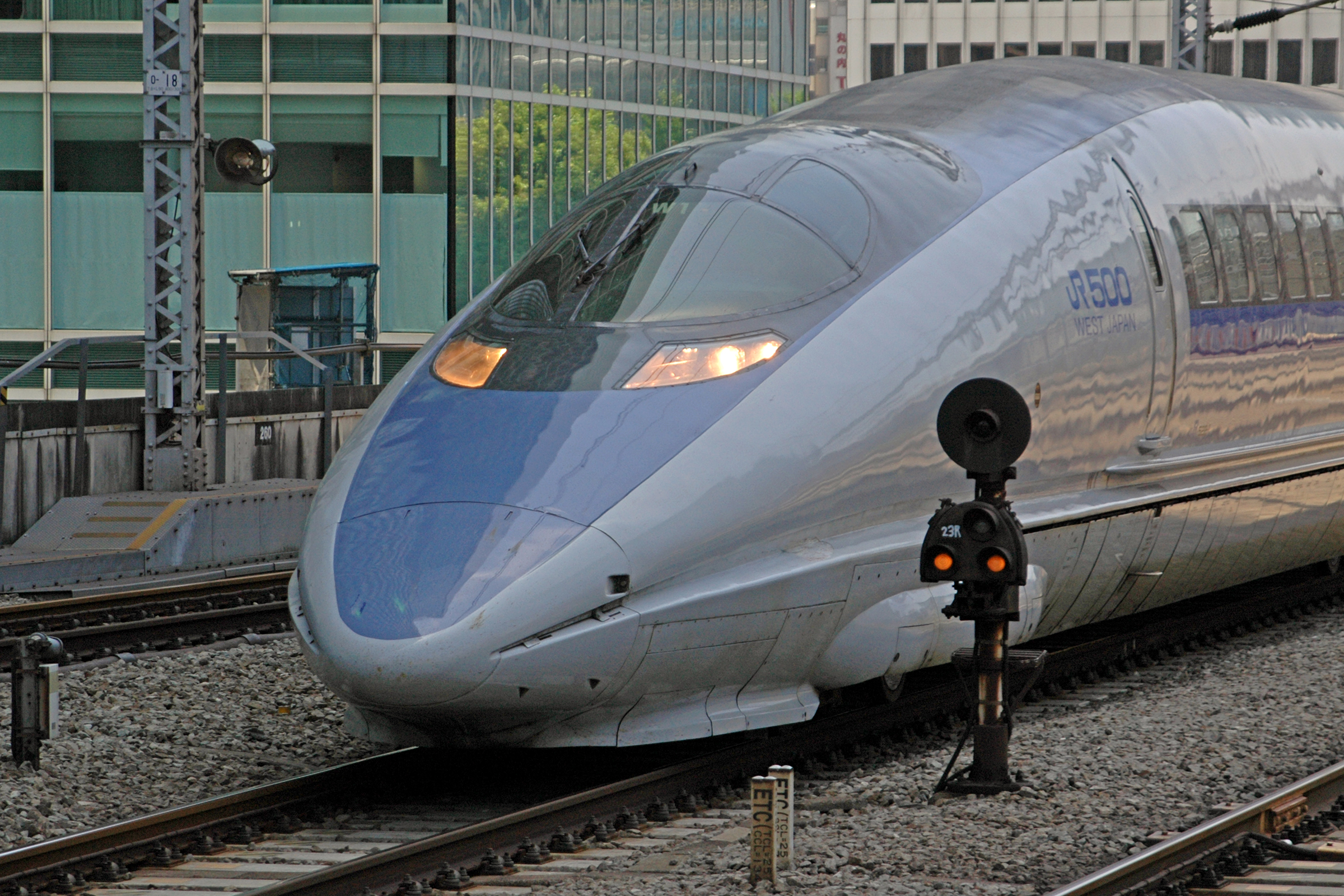 実際に500系を見た人はスラントノーズの長さと独特な雰囲気が印象に残ると思います。 2007/6/17 東京 のぞみ2号 |