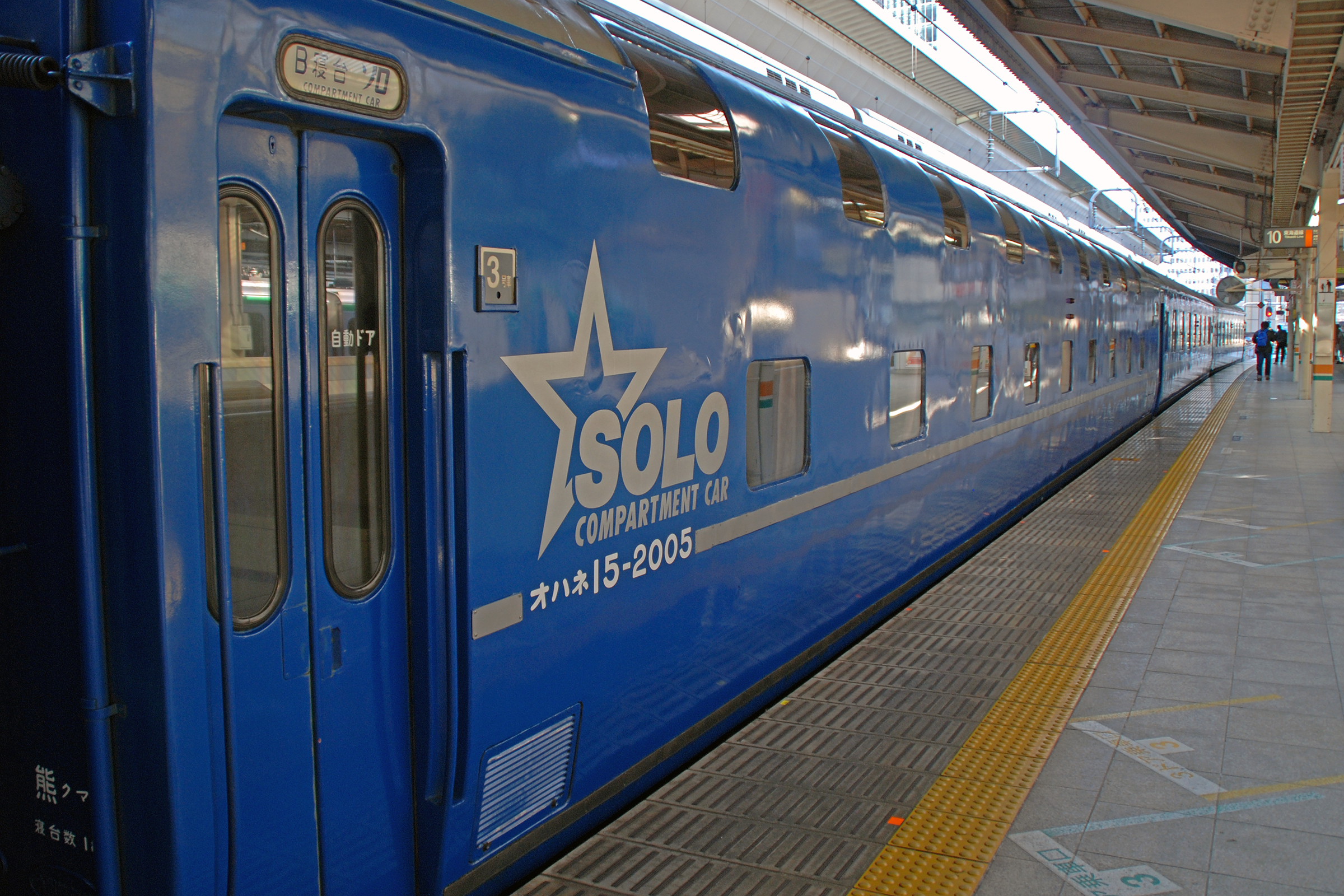 朧げな記憶ですが、特急つばめのヘッドマークに似ていると思います。 2008年の夏は乗客にも人気があり、記念撮影する人が順番待ちしていました。 2008/7/13 東海道本線 東京 寝台特急 富士/はやぶさ 14系 |