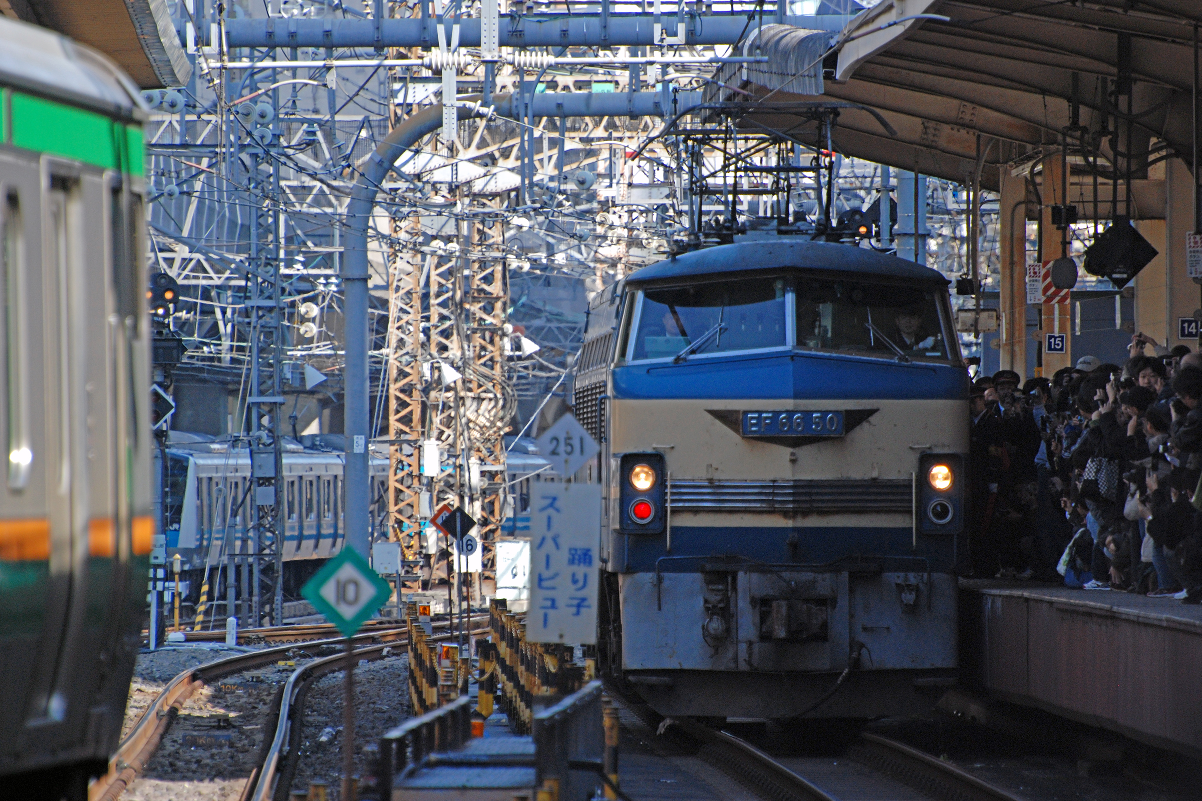 東京で見られるブルートレインの最期も近くなり、9/10番線は激パになっていました。 2009/3/7 東海道本線 東京 EF6650 |