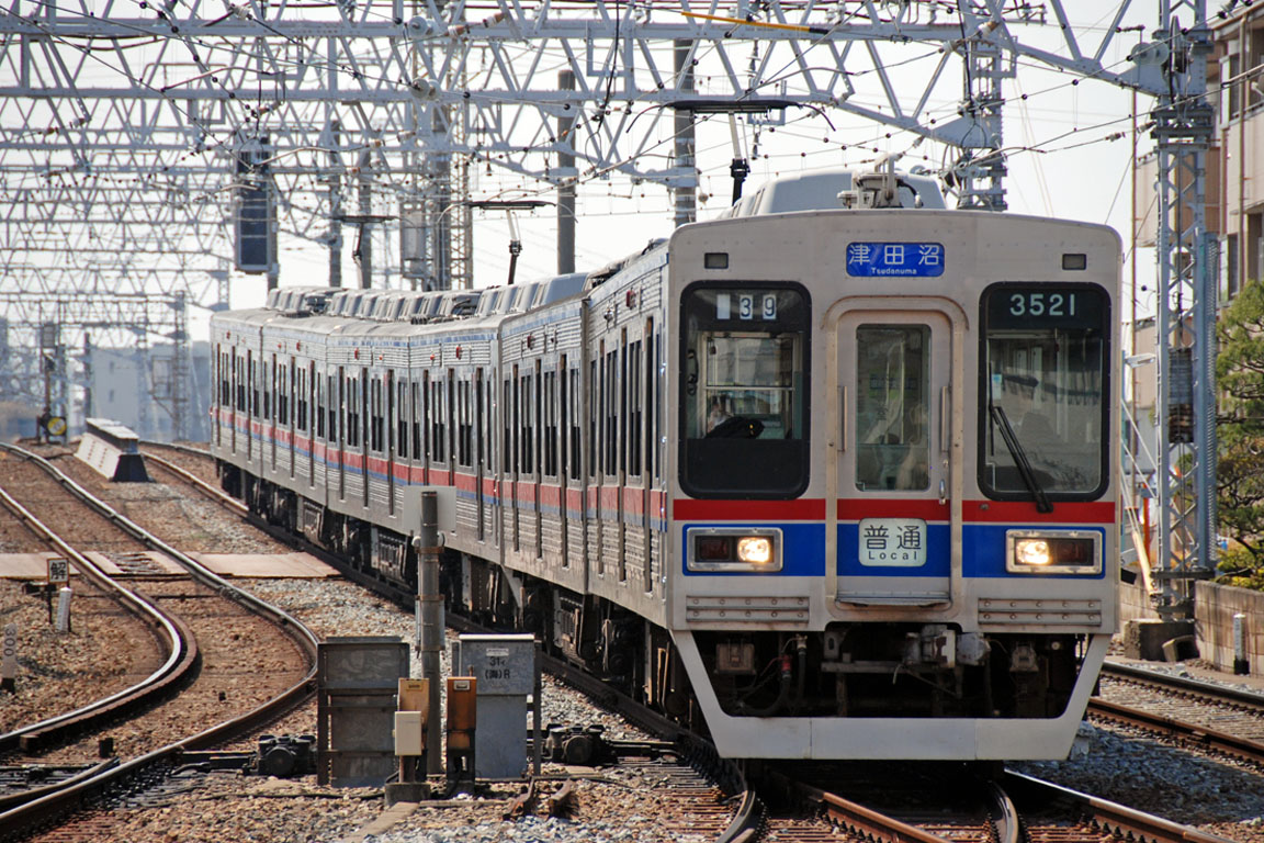 | 3番線に到着する京成津田沼行きです。