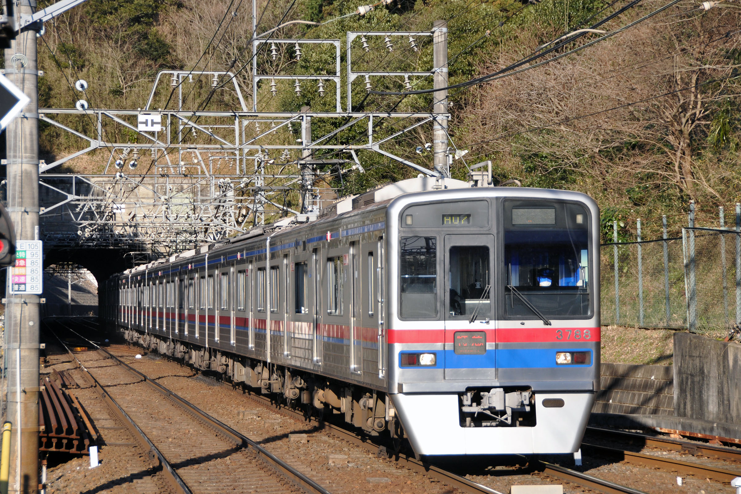 宗吾参道には車両基地があり、回送列車も見られます。 2010/1/24 本線 宗吾参道 model 3700, 3788 特急 京成上野行き |