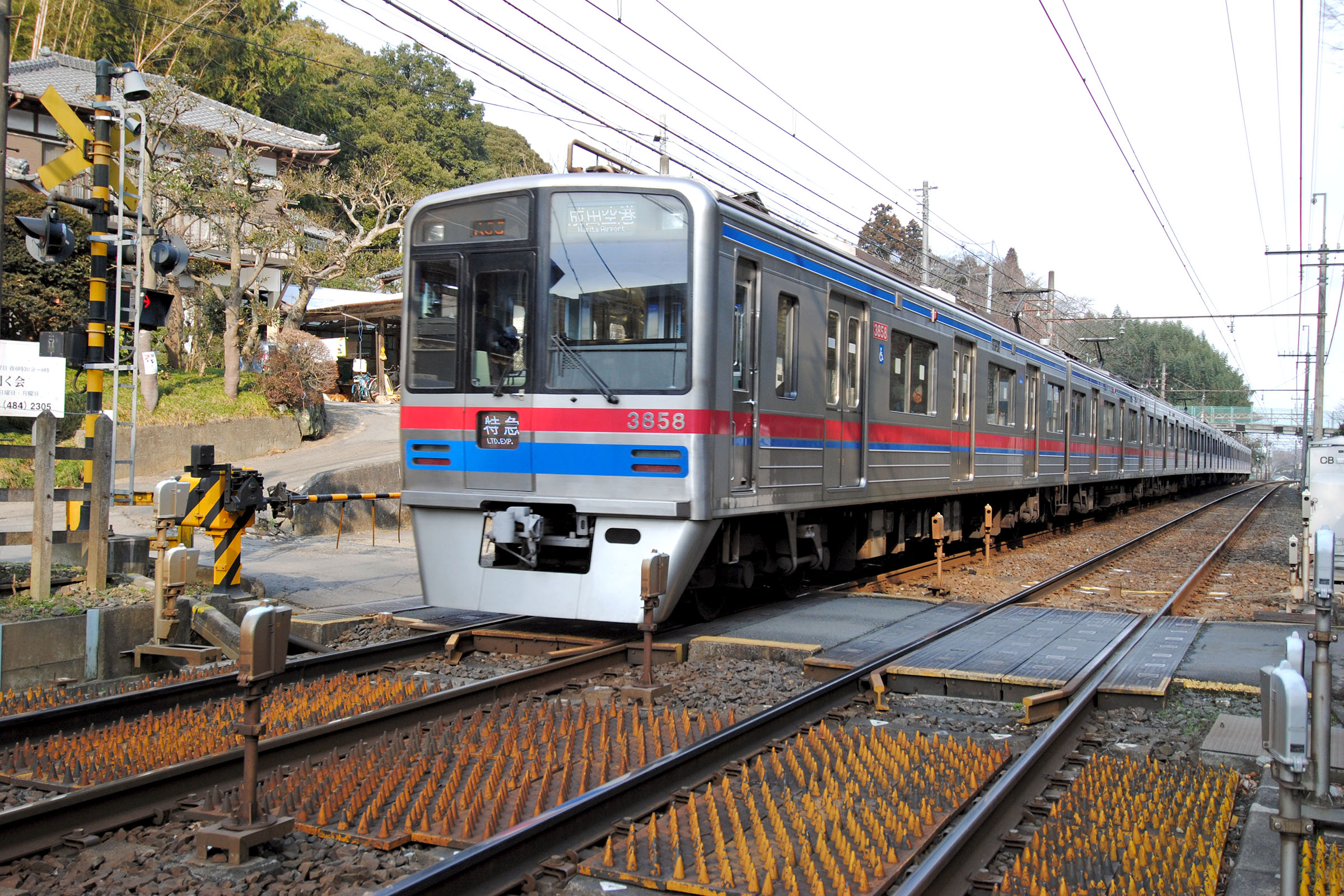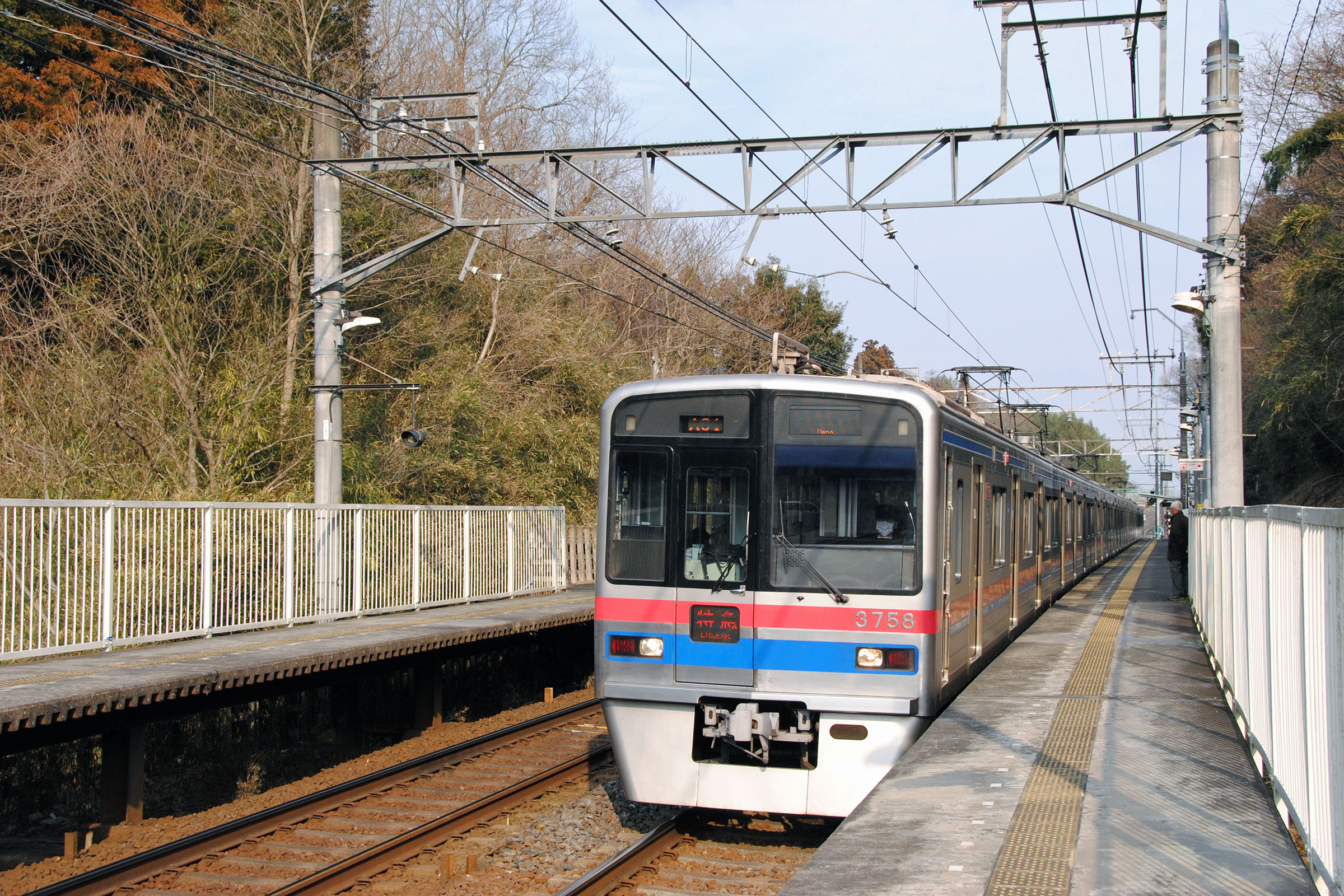京成津田沼から成田までは丘陵地帯で下総台地(北総台地)に向かって緩やかに登ります。 2010/1/31 本線 大佐倉 model 3700, 3858 特急 成田空港行き |