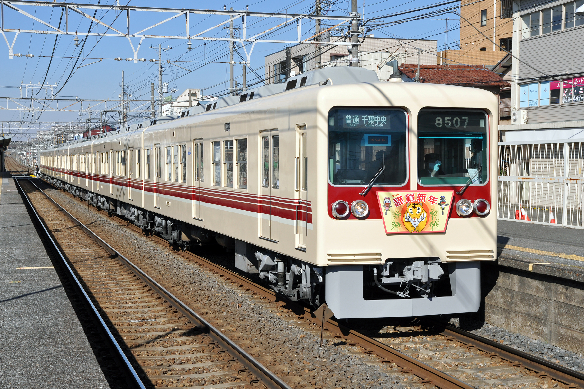 新京成車は6両編成、京成車はほとんど4両編成でした。 2010/1/24 千葉線 京成稲毛 Shin-keisei model 8000, 8507 千葉中央行き |