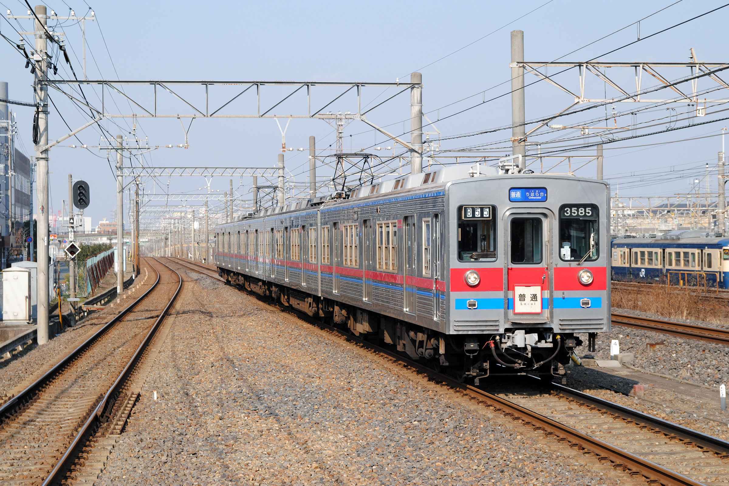 3500は1972年から1982年に24編成96両が製造されました。 1996年から56両が延命改造されて残りの40両は対象外になりました。 対象外の編成は2017年に引退しました。 2010/1/31 千葉線 幕張本郷 model 3500, 3585 京成高砂行き |