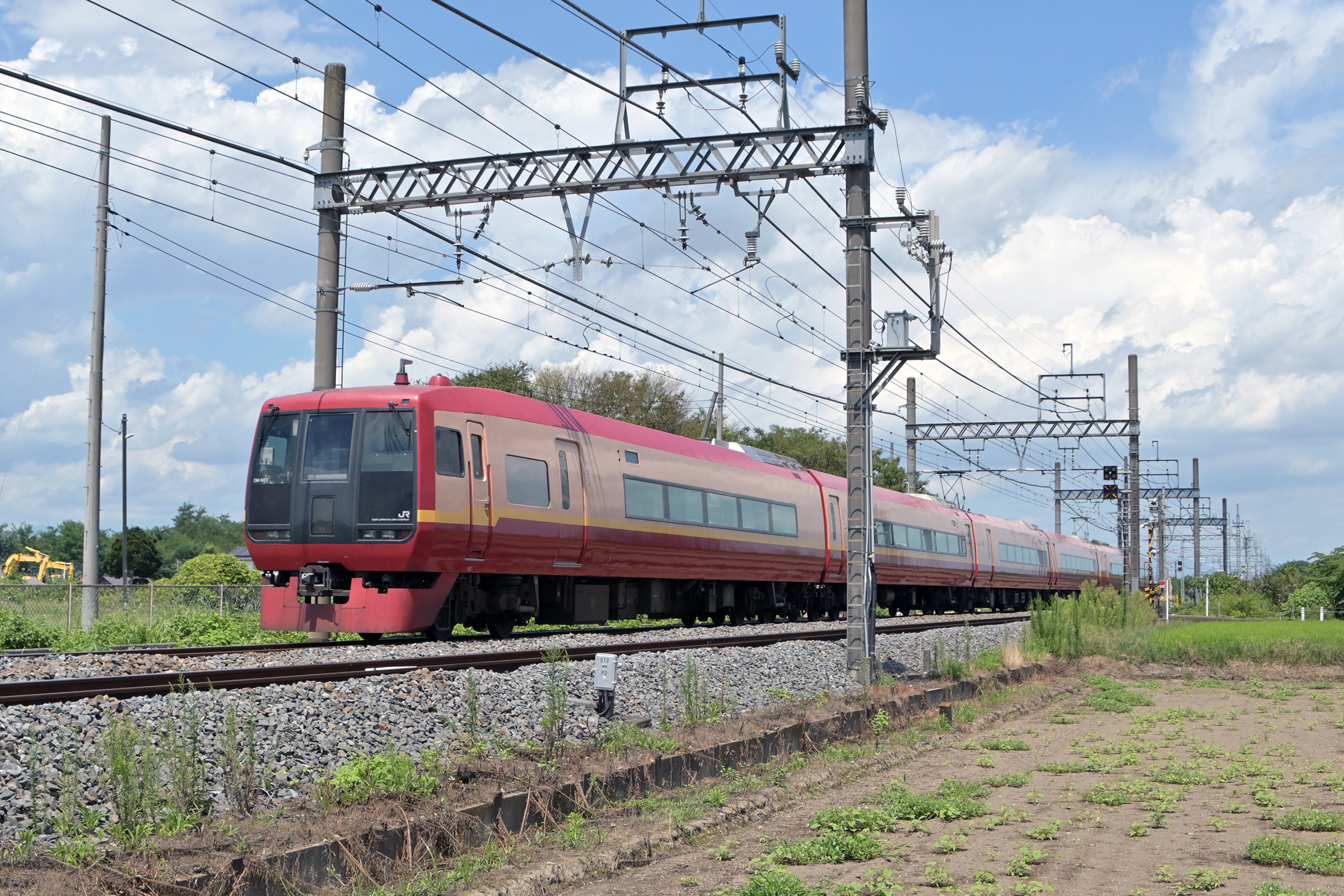 新宿から東北本線の栗橋経由で東武日光線に乗り入れています。 初代のNEXとして活躍しましたが、現在はこの特急専用です。 253はJR Eastで最後の国鉄特急電車になりました。 2025/8/8 東武日光線 家中 JR East series 253 type 1000 特急きぬがわ 鬼怒川温泉行き |
