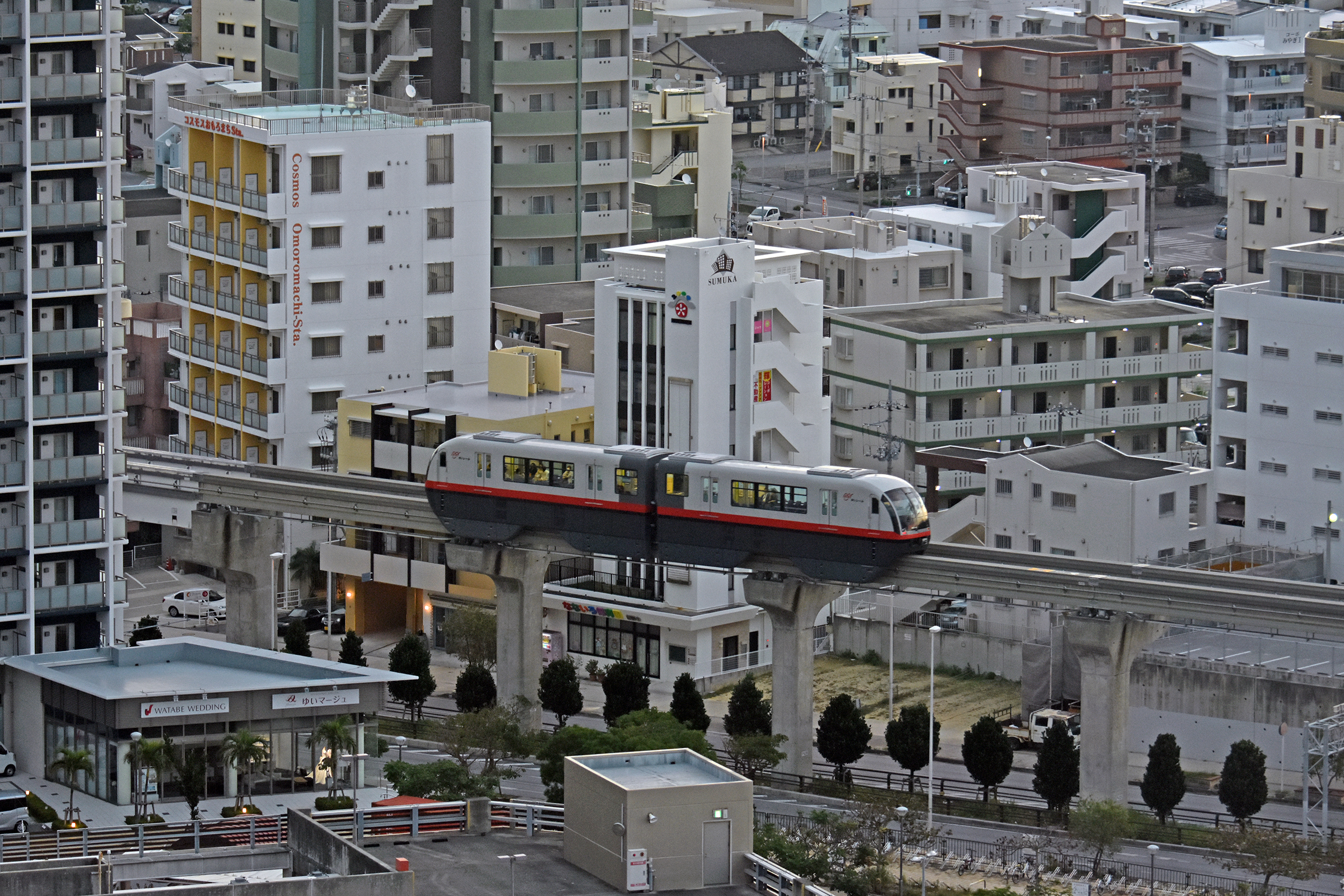 ゆいレールは跨座式モノレールにより沖縄都市モノレール線(19駅/17.0 km)を運行しています。